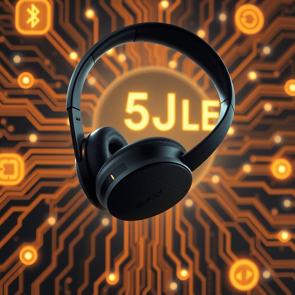 High-quality headphones and earbuds representing Bluetooth 5.4 and Wi-Fi 7 standards, their design elements highlighted.